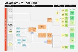 価値創造マップとは、企業がどのようにしてお客様や社会に対して価値を生み出していくか、具体的な施策も含めて、1枚の図で流れを表したものです。